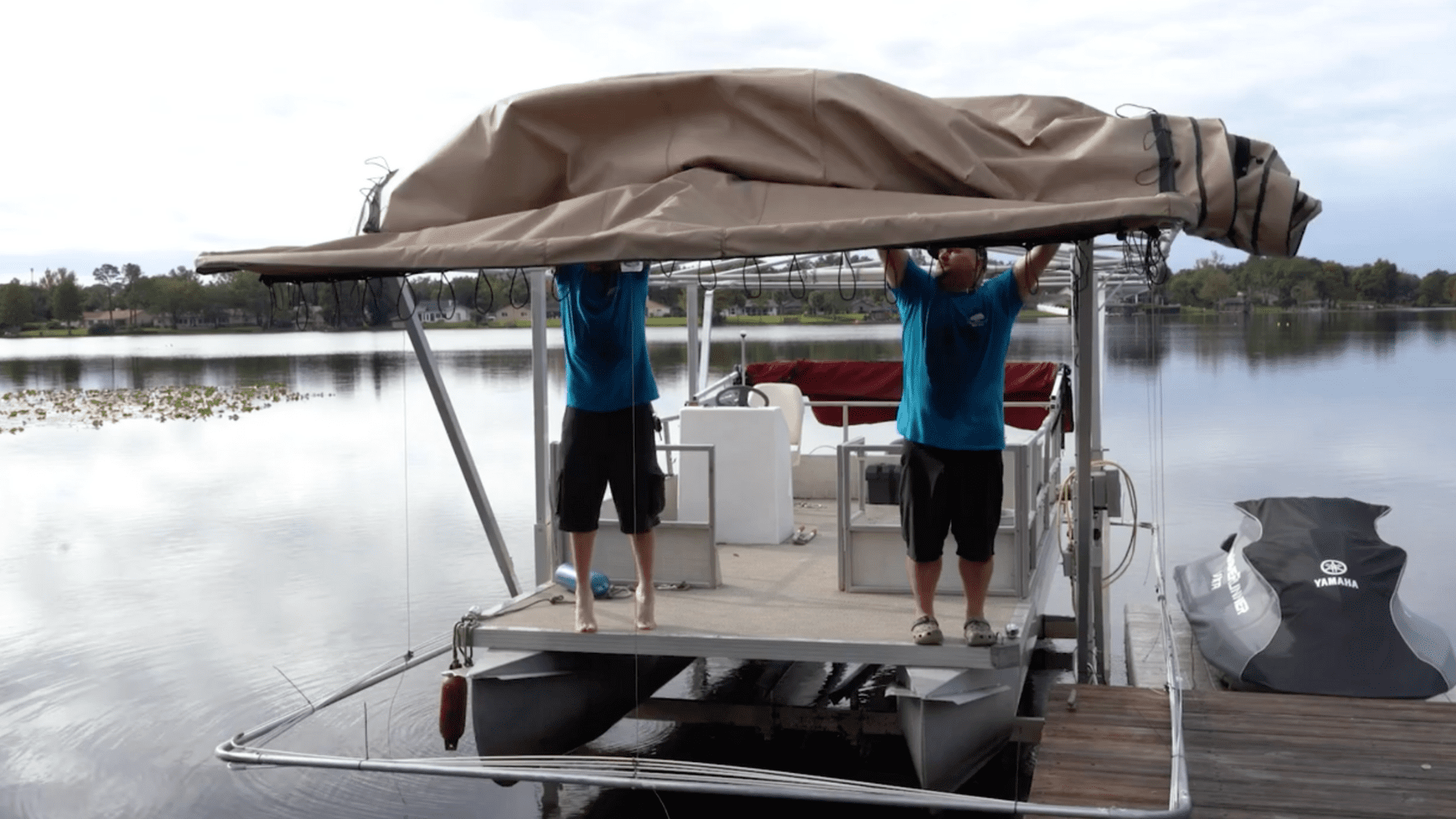 This will ensure minimal damage to the Touchless Cover® during a direct hit from a storm. Watch how to remove the fabric here.